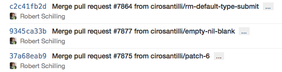 We recommend to commit early and often. Each time you have a functioning set of tests and code a commit can be made. The advantage is that when an extension or refactor goes wrong it is easy to revert to a working version. This is quite a change for programmers that used SVN before, they used to commit when their work was ready to share. The trick is to use the merge/pull request with multiple commits when your work is ready to share. The commit message should reflect your intention, not the contents of the commit. The contents of the commit can be easily seen anyway, the question is why you did it. An example of a good commit message is: "Combine templates to dry up the user views.". Some words that are bad commit messages because they don't contain much information are: change, improve and refactor. The word fix or fixes is also a red flag, unless it comes after the commit sentence and references an issue number. To see more information about the formatting of commit messages please see this great blog post by Tim Pope.